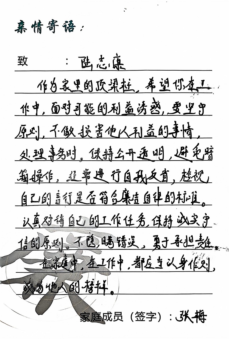 為深入學(xué)習(xí)黨的二十大精神,貫徹落實習(xí)近平總書記關(guān)于注重家庭家教家風(fēng)建設(shè)的重要論述,營造公司崇廉、尚廉、踐廉、助廉的良好氛圍,城投公司組織開展了“家滿清風(fēng)·廉潤城投”廉潔文化活動;顒娱_展以來,共征集廉政寄語210余條。經(jīng)各部門、子公司推薦,城投公司相關(guān)部門審核,評選出優(yōu)秀廉潔寄語43條,F(xiàn)將優(yōu)秀廉政寄語分批次進行展播,快來一起欣賞吧!
