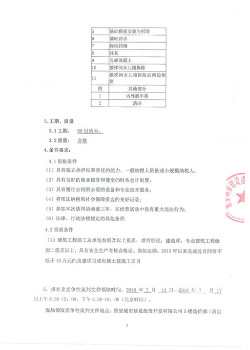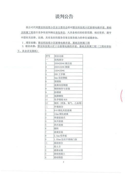 雅安科技苑小區(qū)新增電梯井道、基礎(chǔ)及附屬工程——競(jìng)爭(zhēng)性談判