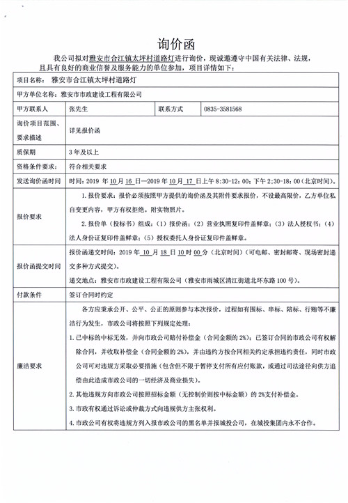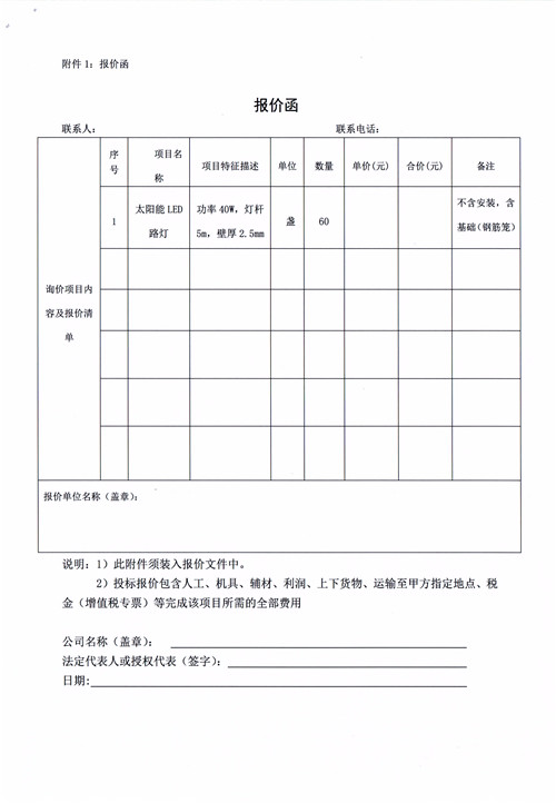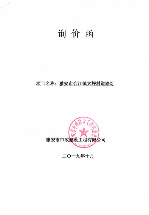 雅安市合江鎮(zhèn)太坪村道路燈詢價函