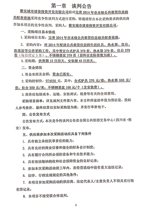 完善2014年市本級公共租賃住房相關配套設施的競爭性談判公告