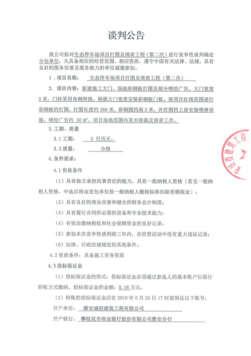 生態(tài)停車場項目打圍及清表工程競爭性談判公告(第二次)