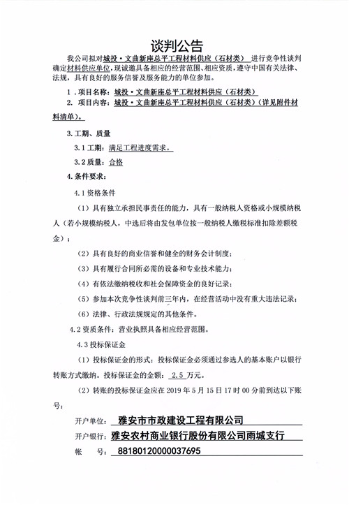 城投·文曲新座總平工程材料供應(yīng)(石材類)競(jìng)爭(zhēng)性談判公告