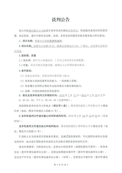 城投建工購置辦公電腦確認供貨單位的競爭性談判公告