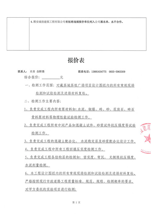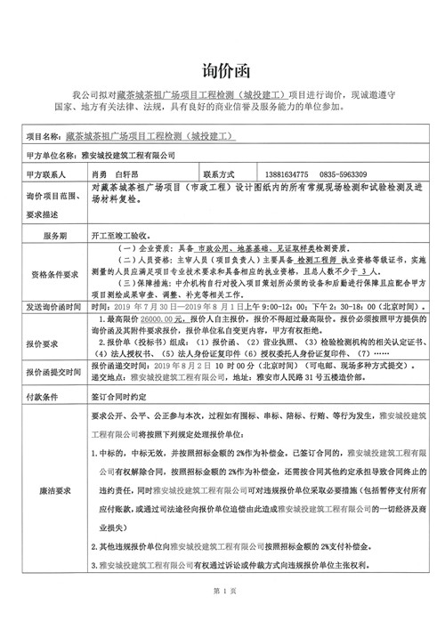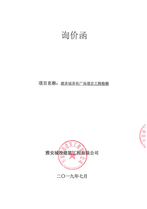 藏茶城茶祖廣場(chǎng)項(xiàng)目工程檢測(cè)詢價(jià)函
