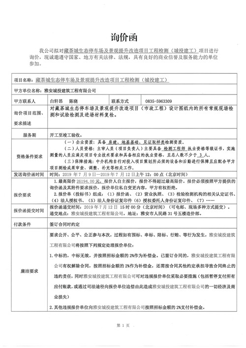 藏茶城生態(tài)停車場及景觀提升改造項目工程檢測