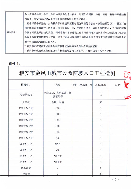 雅安市金鳳山城市公園南坡入口工程檢測(cè)服務(wù)詢價(jià)函