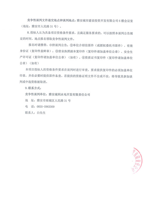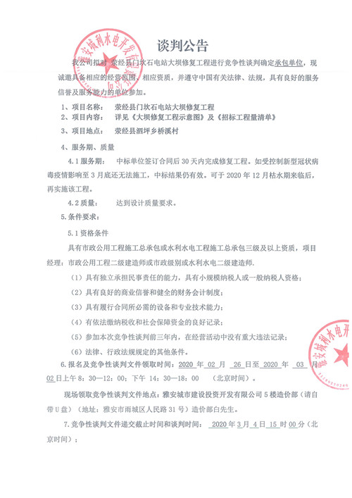 滎經(jīng)縣門坎石電站大壩修復(fù)工程競爭性談判公告