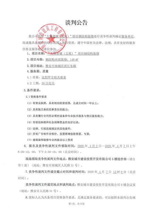 城投建工“大興壹號(hào)(北苑)”項(xiàng)目鋼結(jié)構(gòu)裝修競爭性談判公告