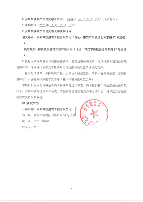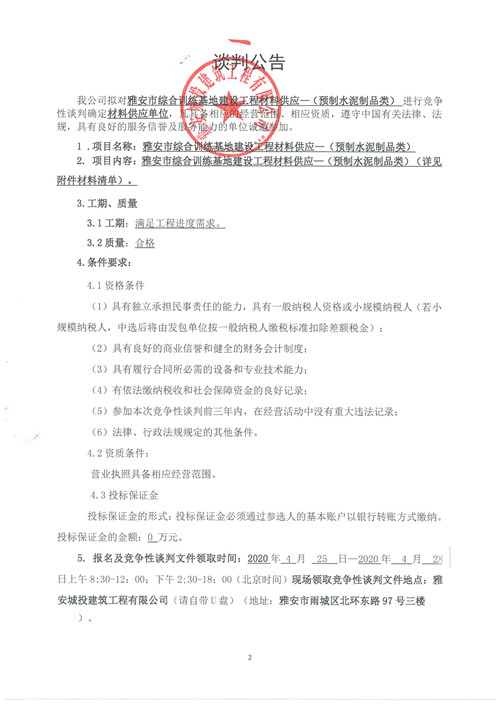城投建工雅安市綜合訓練基地建設工程材料供應—(預制水泥制品類)競爭性談判公告(第二次)