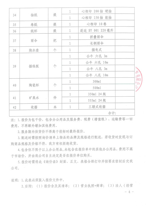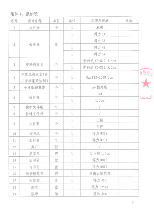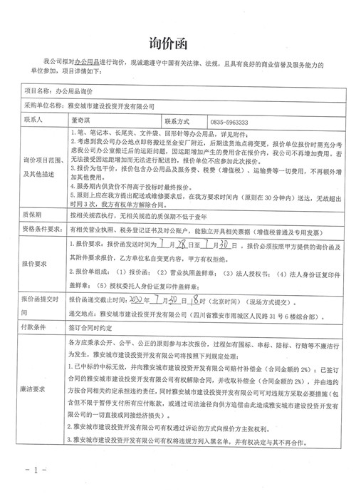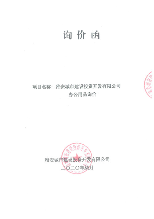 雅安城市建設投資開發(fā)有限公司辦公用品詢價