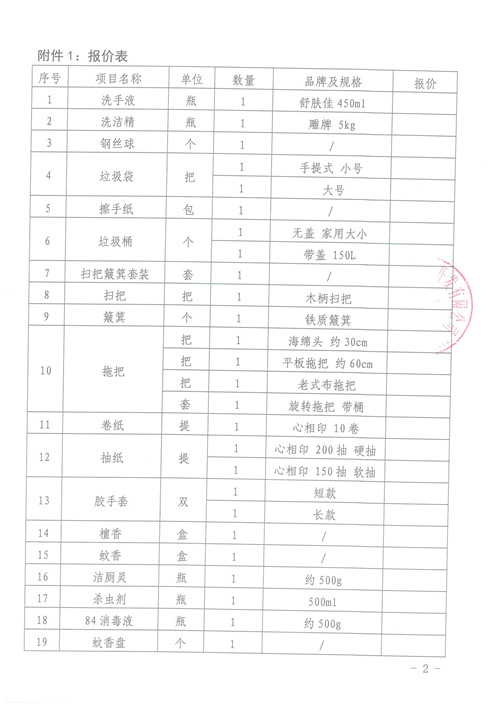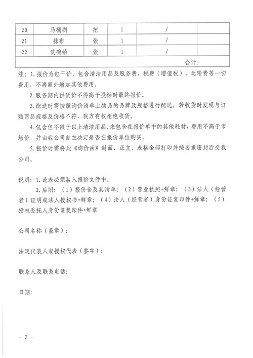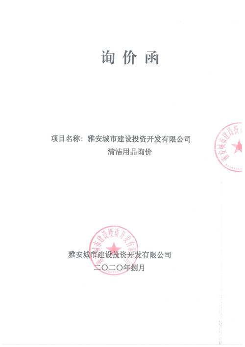 雅安城市建設投資開發(fā)有限公司清潔用品詢價函