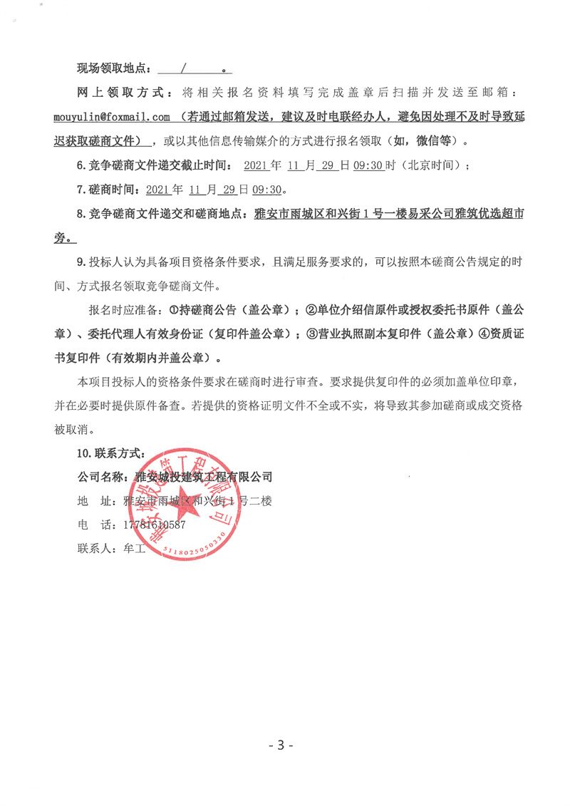 雅安金熊貓?bào)w育產(chǎn)業(yè)園(體育服裝標(biāo)準(zhǔn)化廠(chǎng)房)建設(shè)項(xiàng)目餐廳、宿舍門(mén)窗工程競(jìng)爭(zhēng)磋商公告