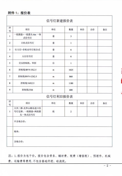 雅安市市政建設(shè)工程有限公司雅安市光華山路與大興二橋交叉口交通工程信號燈采購安裝詢價函