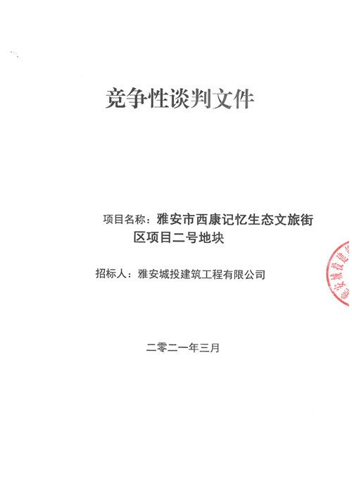 城投建工公司雅安市西康記憶生態(tài)文旅街區(qū)項(xiàng)目二號(hào)地塊土石方專業(yè)分包工程競(jìng)爭(zhēng)性談判公告