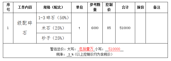 2.1項(xiàng)目內(nèi)容:雅安文教新城市政道路恢復(fù)重建項(xiàng)目(一標(biāo)段)級配碎石采購供貨商的確定,保障市政公司相關(guān)工程的順利進(jìn)行,具體貨物見材料清單(本招標(biāo)文件所附清單(數(shù)量、規(guī)格、種類)僅供參考,最終采購數(shù)量實(shí)際發(fā)生(分散采購)的為準(zhǔn))。