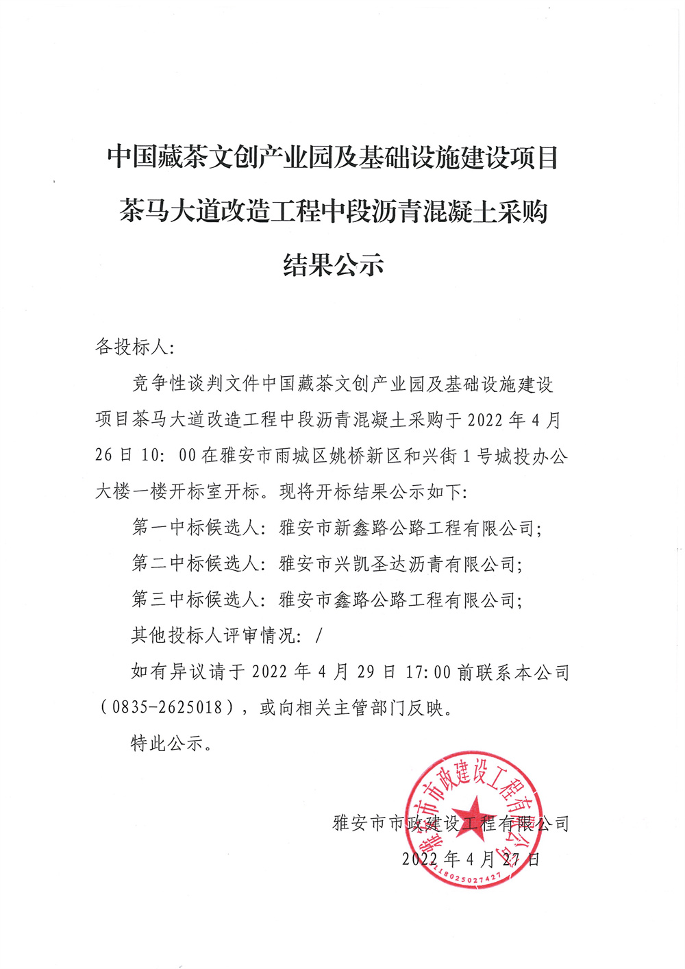 中國藏茶文創(chuàng)產(chǎn)業(yè)園及基礎(chǔ)設(shè)施建設(shè)項(xiàng)目茶馬大道改造工程中段瀝青采購競爭性談判結(jié)果公示