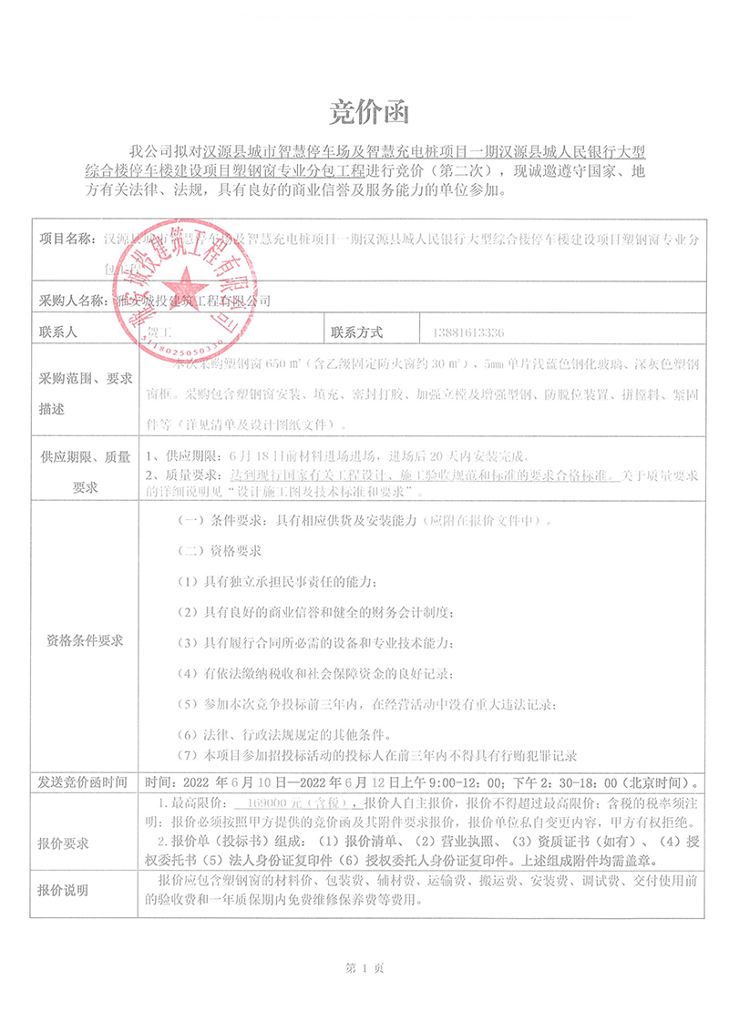 漢源縣城市智慧停車場及智慧充電樁項(xiàng)目一期漢源縣城人民銀行大型綜合樓停車樓建設(shè)項(xiàng)目塑鋼窗專業(yè)分包工程競價(jià)采購競價(jià)公告
