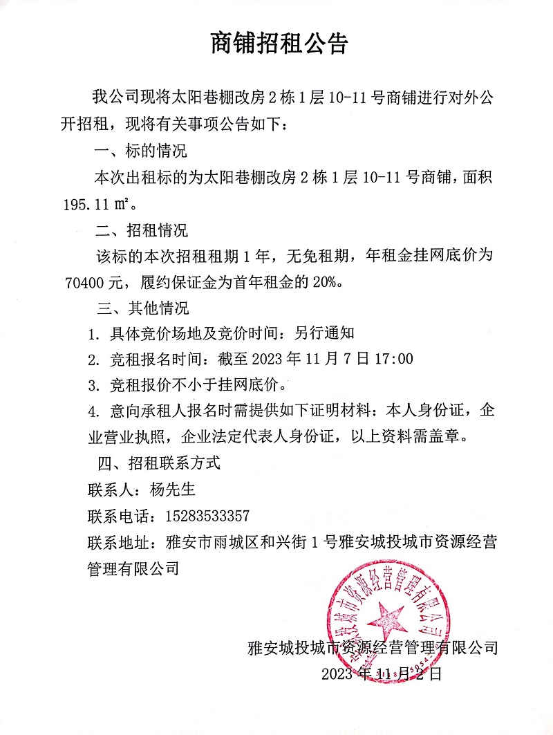 太陽(yáng)巷棚改房2棟1層10-11號(hào)商鋪招租公告