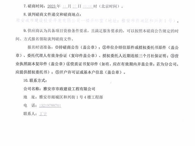 雅安文教新城體育產業(yè)制造園基礎設施及配套工程建設項目一標段入園道路工程項目水穩(wěn)攤鋪勞務分包磋商公告