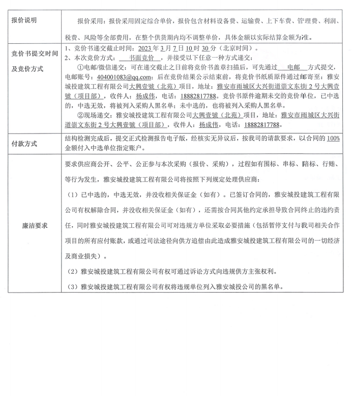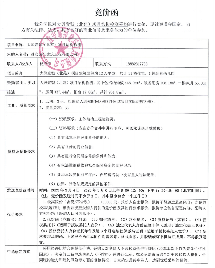 大興壹號(北苑)項目結(jié)構(gòu)檢測競價采購競價公告
