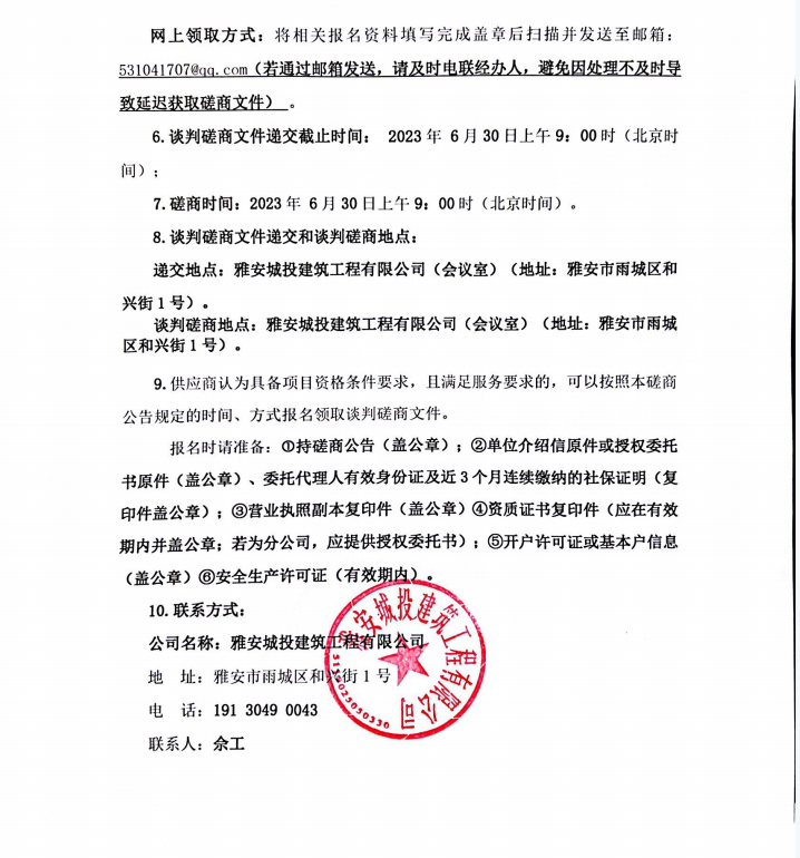 四川省區(qū)域應(yīng)急救援雅安基地項目欄桿專業(yè)分包談判磋商公告