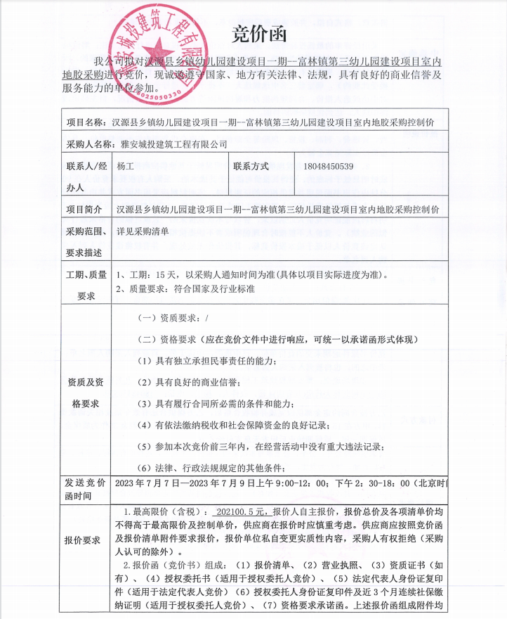 漢源縣鄉(xiāng)鎮(zhèn)幼兒園建設(shè)項(xiàng)目一期--富林鎮(zhèn)第三幼兒園建設(shè)項(xiàng)目室內(nèi)地膠采購競(jìng)價(jià)公告
