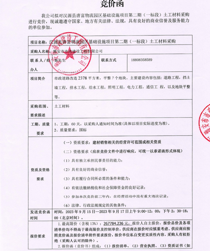 漢源縣唐富物流園區(qū)基礎(chǔ)設(shè)施項目第二期(一標(biāo)段)土工材料采購競價公告