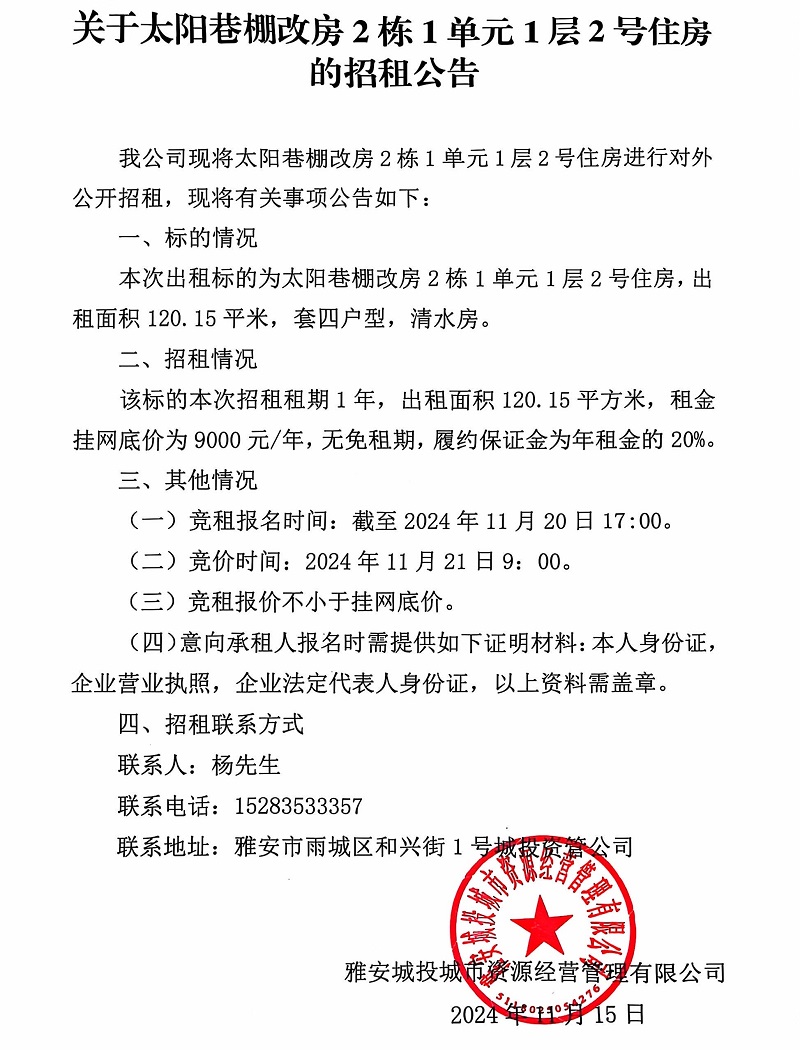 關(guān)于太陽巷棚改房2棟1單元1層2號(hào)住房的招租公告