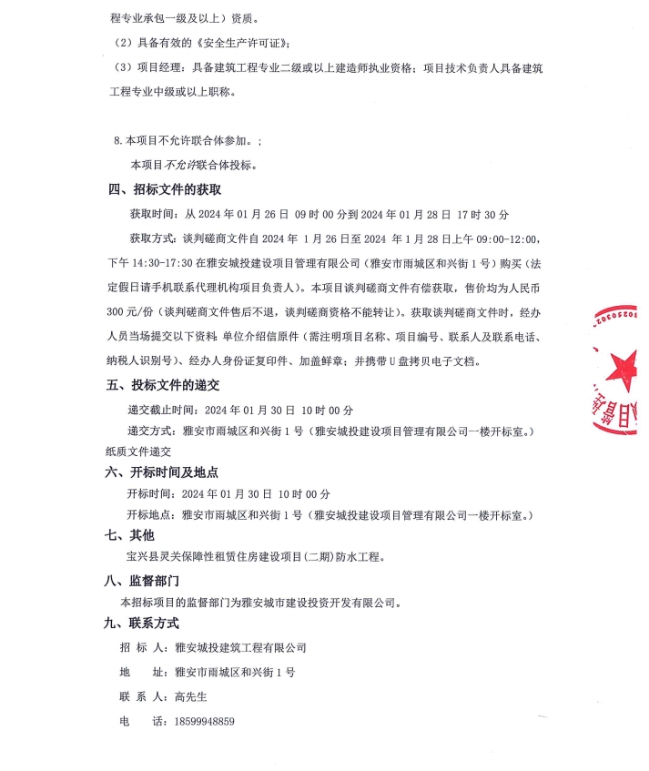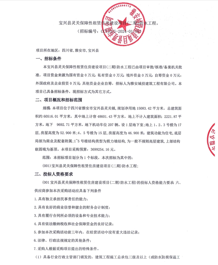 寶興縣靈關(guān)保障性租賃住房建設(shè)項目(二期)防水工程公告