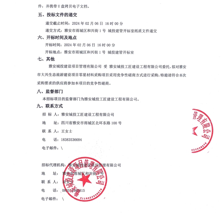 雅安市大興生態(tài)旅游建設(shè)項(xiàng)目零星材料采購(gòu)項(xiàng)目公告
