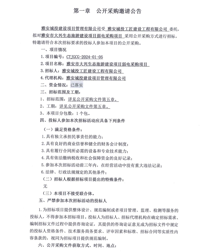 雅安市大興生態(tài)旅游建設(shè)項(xiàng)目弱電采購(gòu)項(xiàng)目公開采購(gòu)邀請(qǐng)公告
