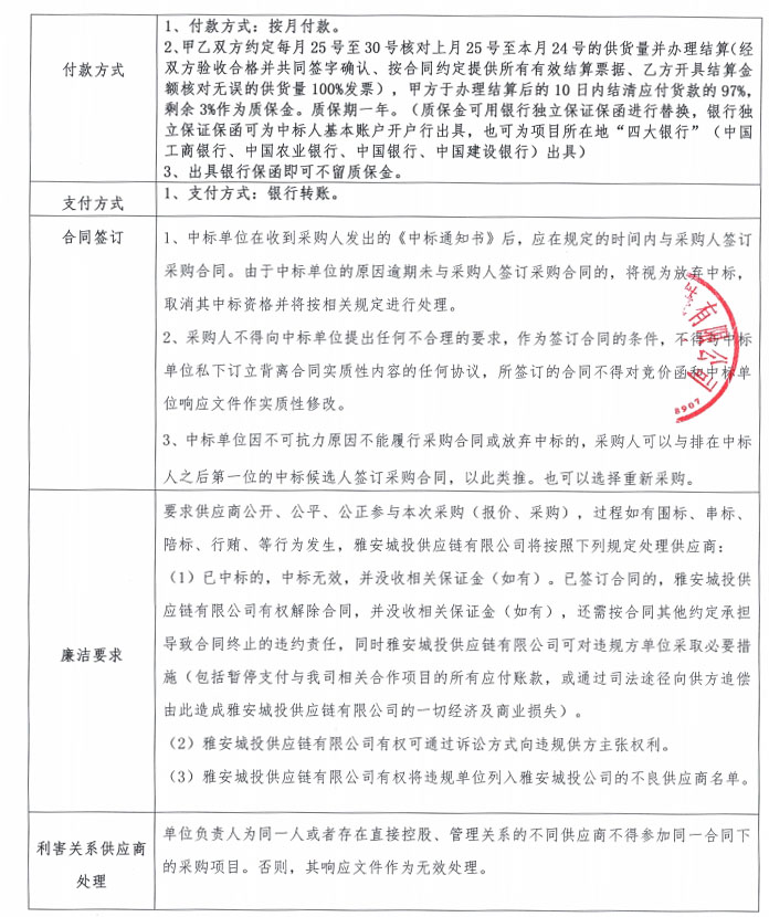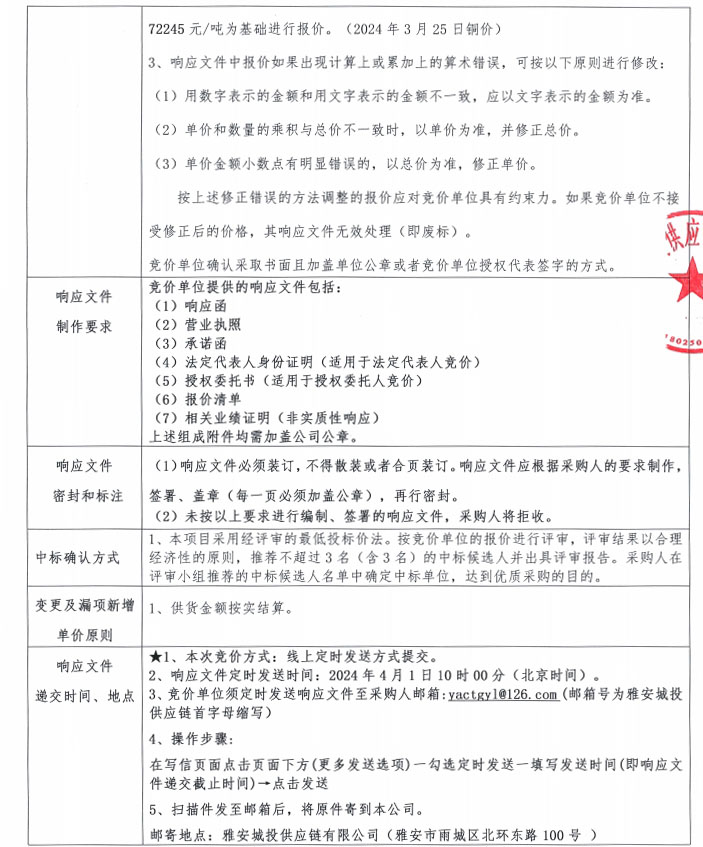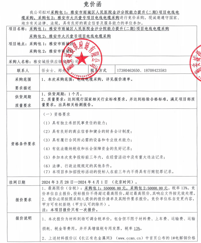 雅安城投供應(yīng)鏈有限公司電線電纜采購(gòu)競(jìng)價(jià)公告