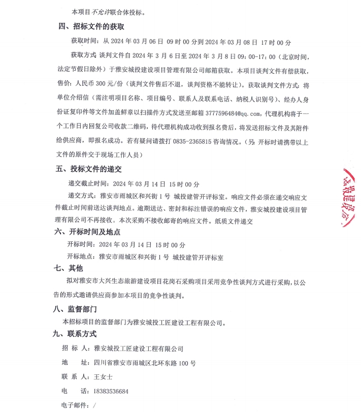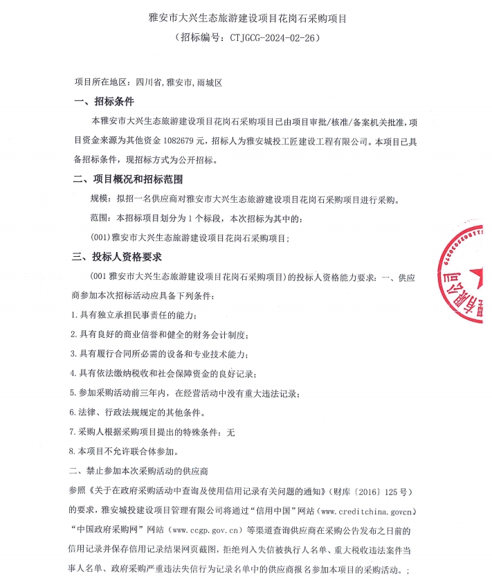 雅安市大興生態(tài)旅游建設(shè)項(xiàng)目花崗石采購(gòu)項(xiàng)目公告