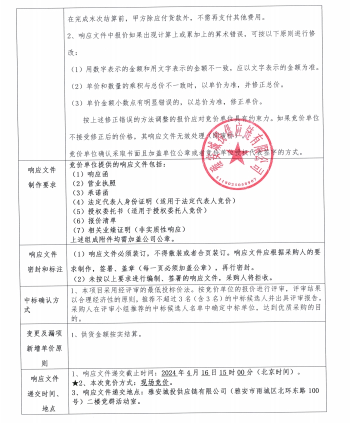 響應(yīng)文件格式(競價(jià))