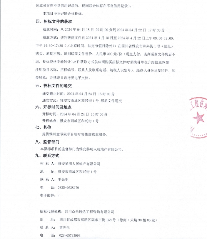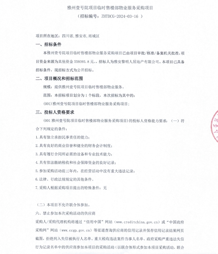 雅州壹號院項(xiàng)目臨時(shí)售樓部物業(yè)服務(wù)采購項(xiàng)目公告