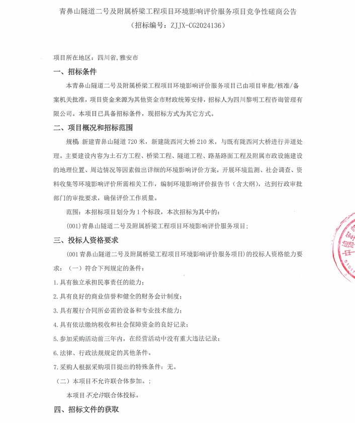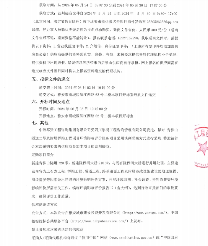 青鼻山隧道二號(hào)及附屬橋梁工程項(xiàng)目環(huán)境影響評(píng)價(jià)服務(wù)項(xiàng)目競(jìng)爭(zhēng)性磋商公告