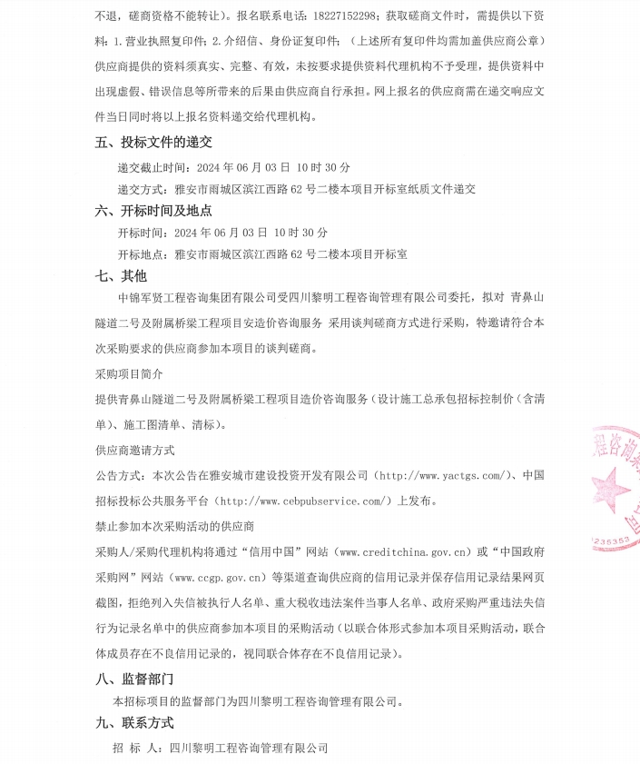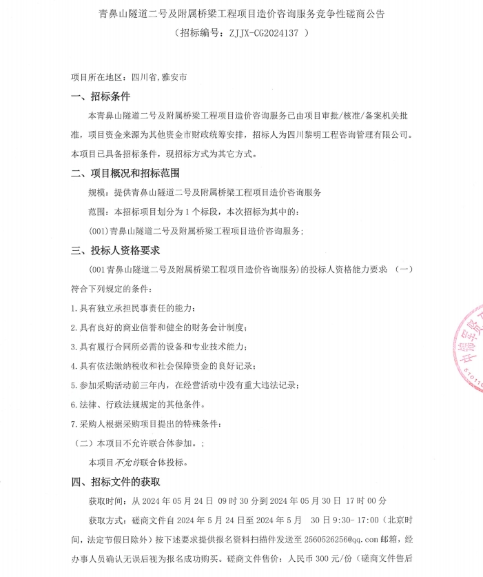 青鼻山隧道二號(hào)及附屬橋梁工程項(xiàng)目造價(jià)咨詢服務(wù)競(jìng)爭(zhēng)性磋商公告