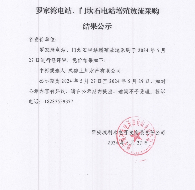 羅家灣電站、門坎石電站增殖放流采購(gòu)結(jié)果公示