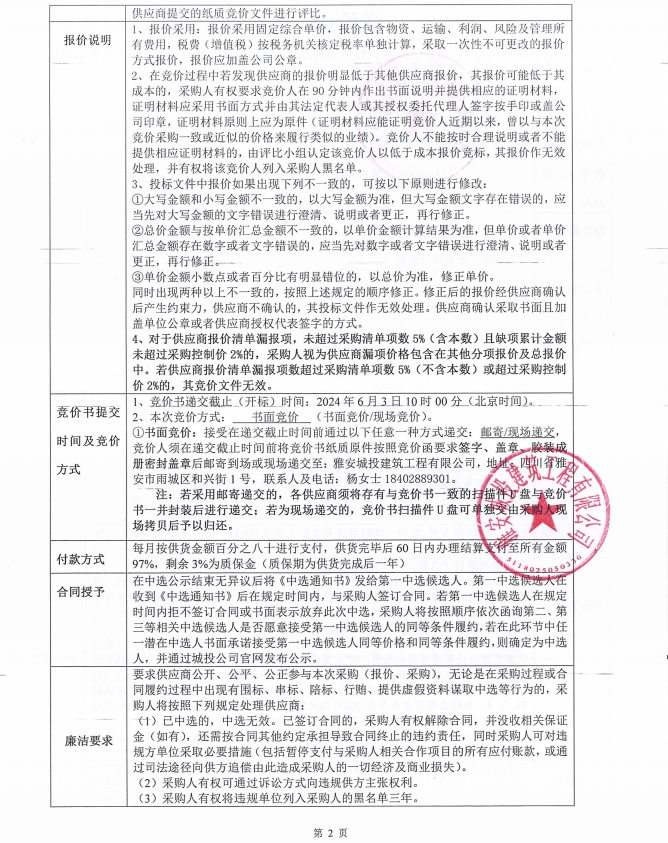 花襄·里項目6月零星材料采購競價公告