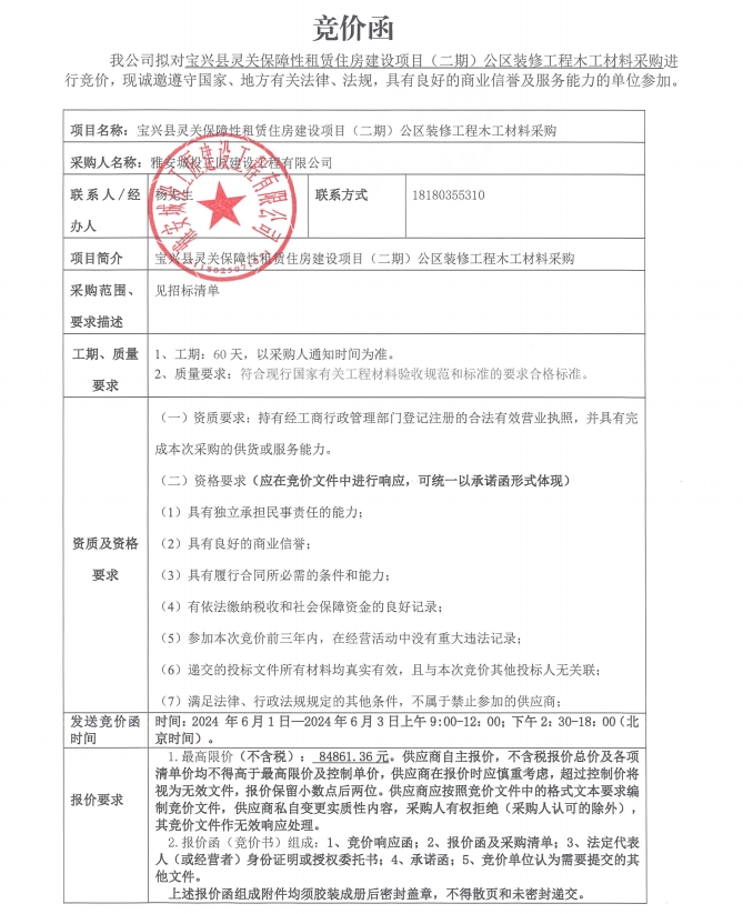 附件:競價函-材料采購-安居房公區(qū)裝修