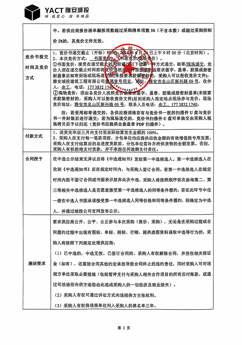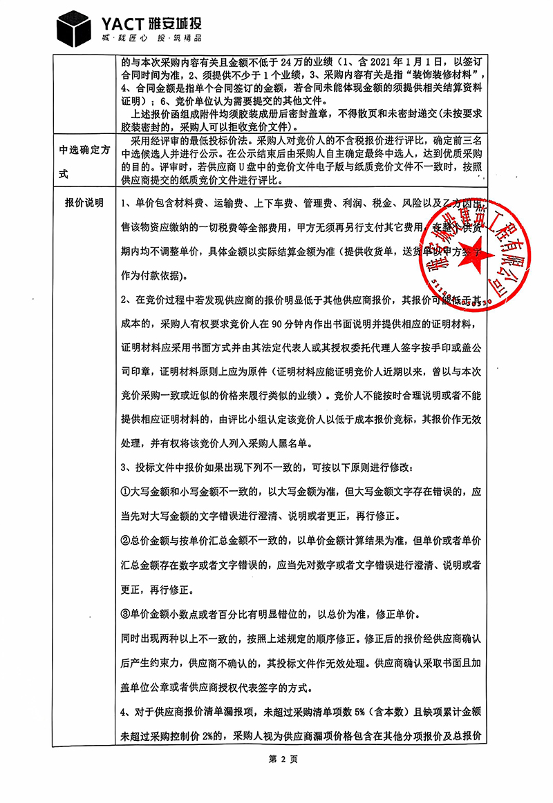 蒙頂壹號(hào)項(xiàng)目穿孔水泥板裝修材料采購(gòu)(第二次)競(jìng)價(jià)函