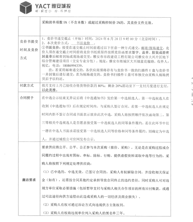 雅安市大興片區(qū)地下綜合管廊建設(shè)項目交安專業(yè)分包標(biāo)線材料采購競價公告
