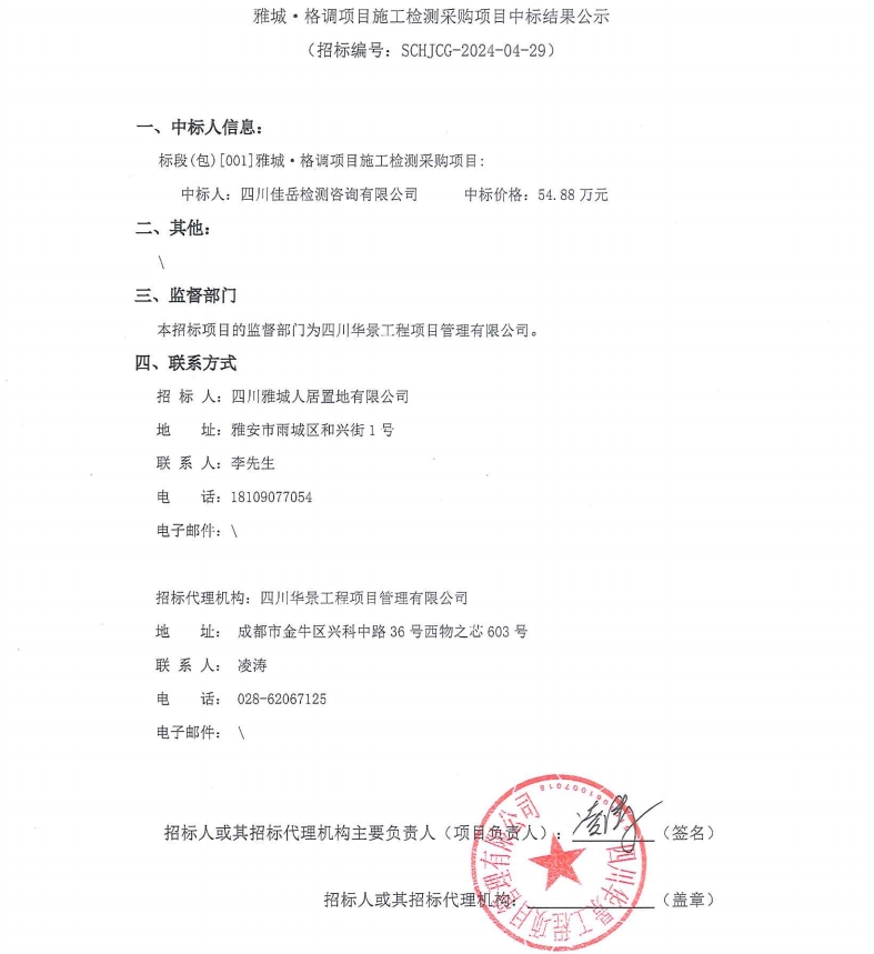 雅城·格調(diào)項目施工檢測采購項目中標(biāo)結(jié)果公示