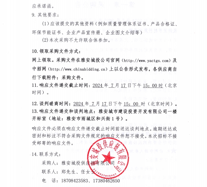 2024年7月-2025年6月雅安城投供應(yīng)鏈有限公司裝飾裝修材料集中采購(gòu)公告