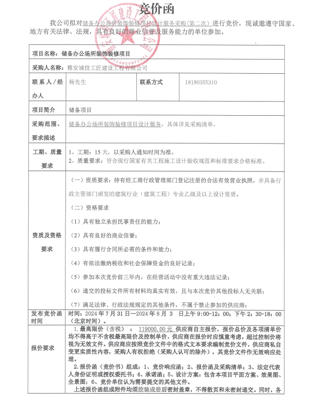 儲(chǔ)備辦公場所裝飾裝修項(xiàng)目設(shè)計(jì)服務(wù)采購(第二次)競價(jià)公告