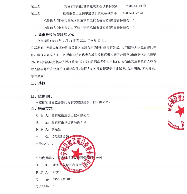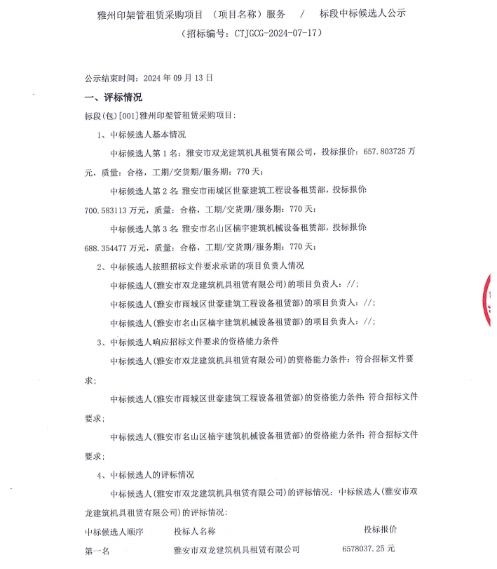 雅州印架管租賃采購項(xiàng)目(項(xiàng)目名稱)服務(wù)/標(biāo)段中標(biāo)候選人公示公告