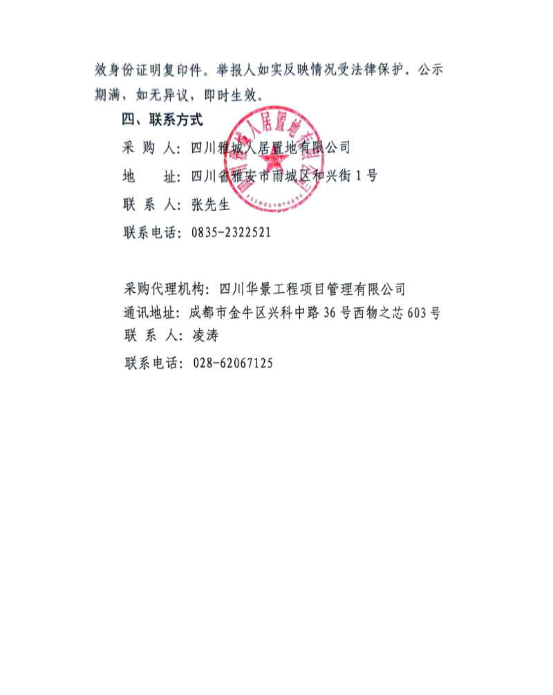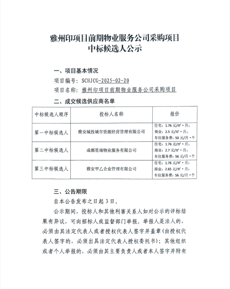 雅州印項目前期物業(yè)服務(wù)公司采購項目中標(biāo)候選人公示