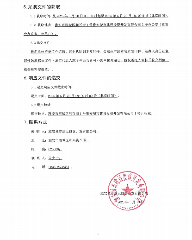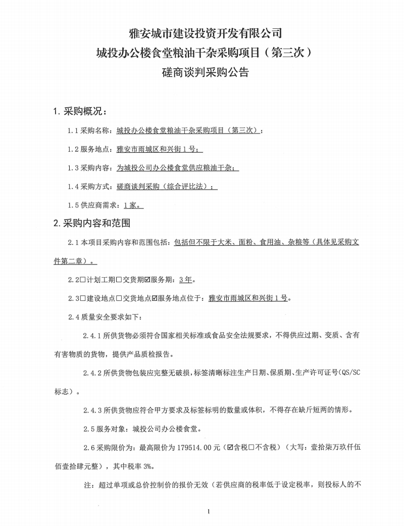 雅安城市建設(shè)投資開發(fā)有限公司城投辦公樓食堂糧油干雜采購項目(第三次)磋商談判采購公告